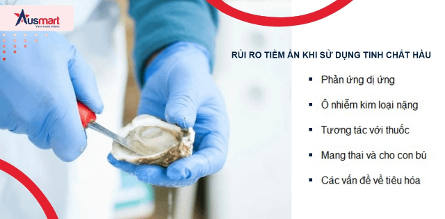 Mặc dù tinh chất hàu được coi là an toàn cho hầu hết mọi người, nhưng có một số rủi ro tiềm ẩn và biện pháp phòng ngừa cần lưu ý: